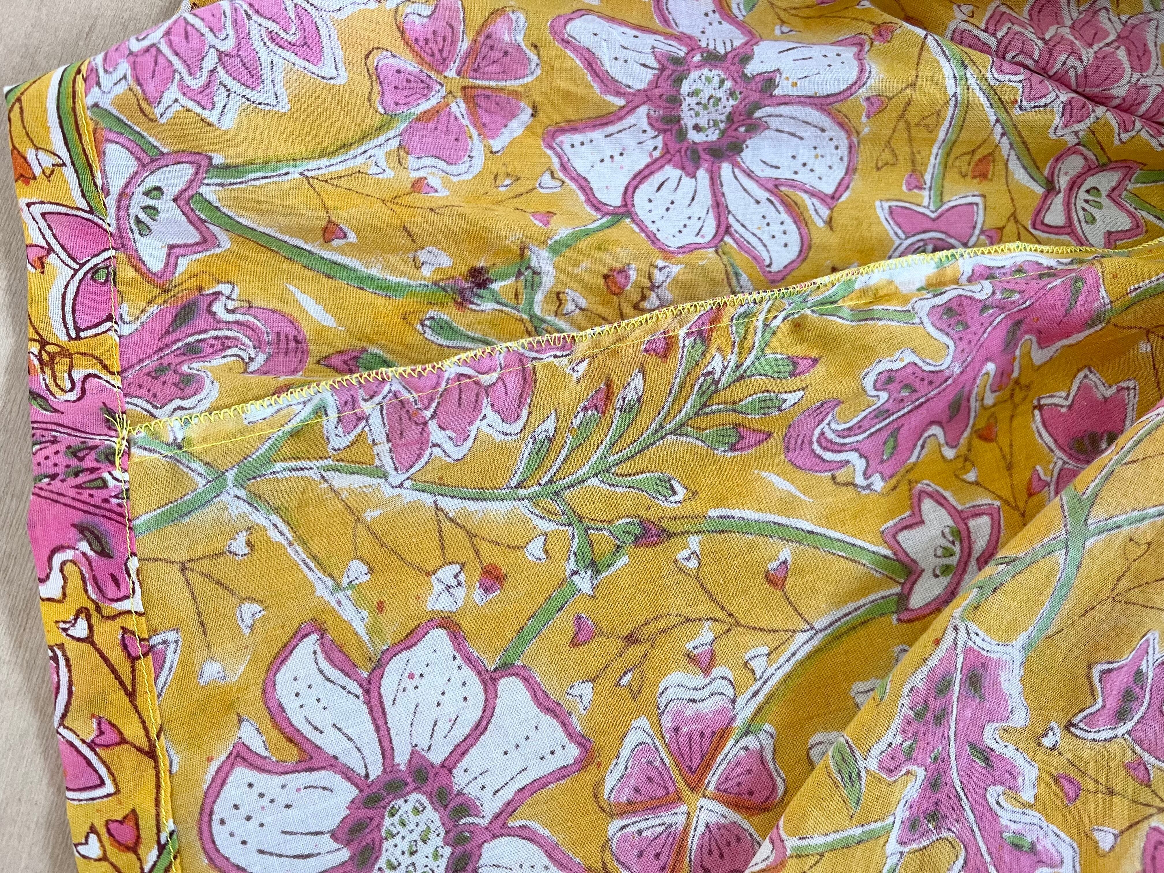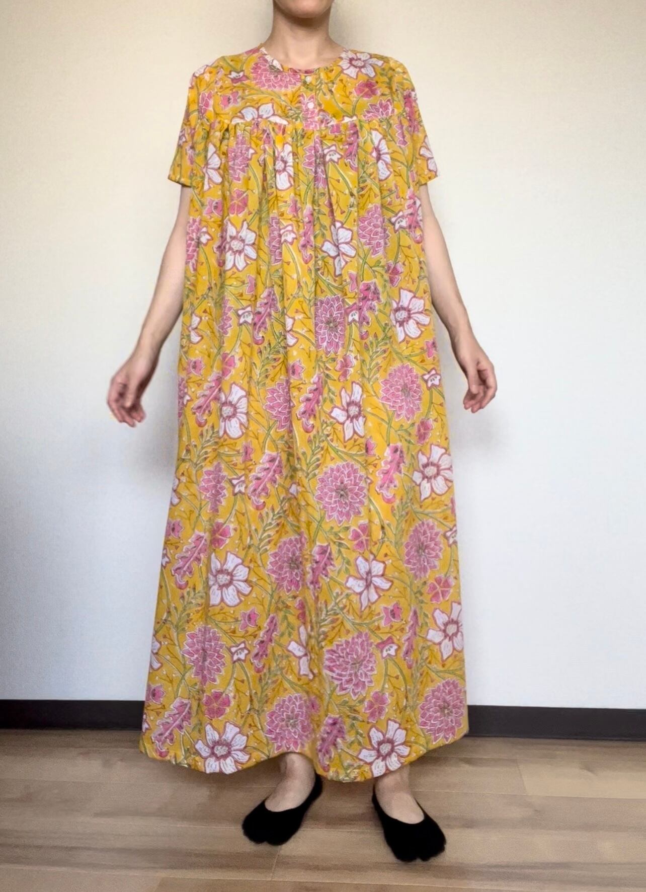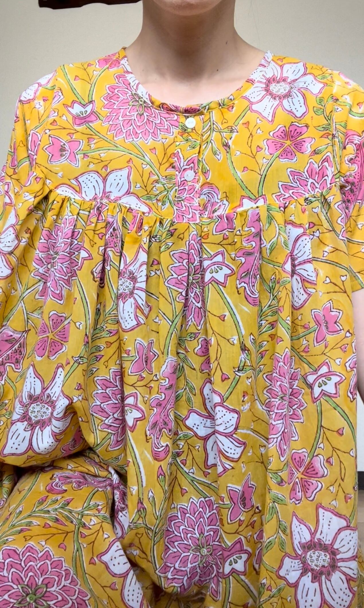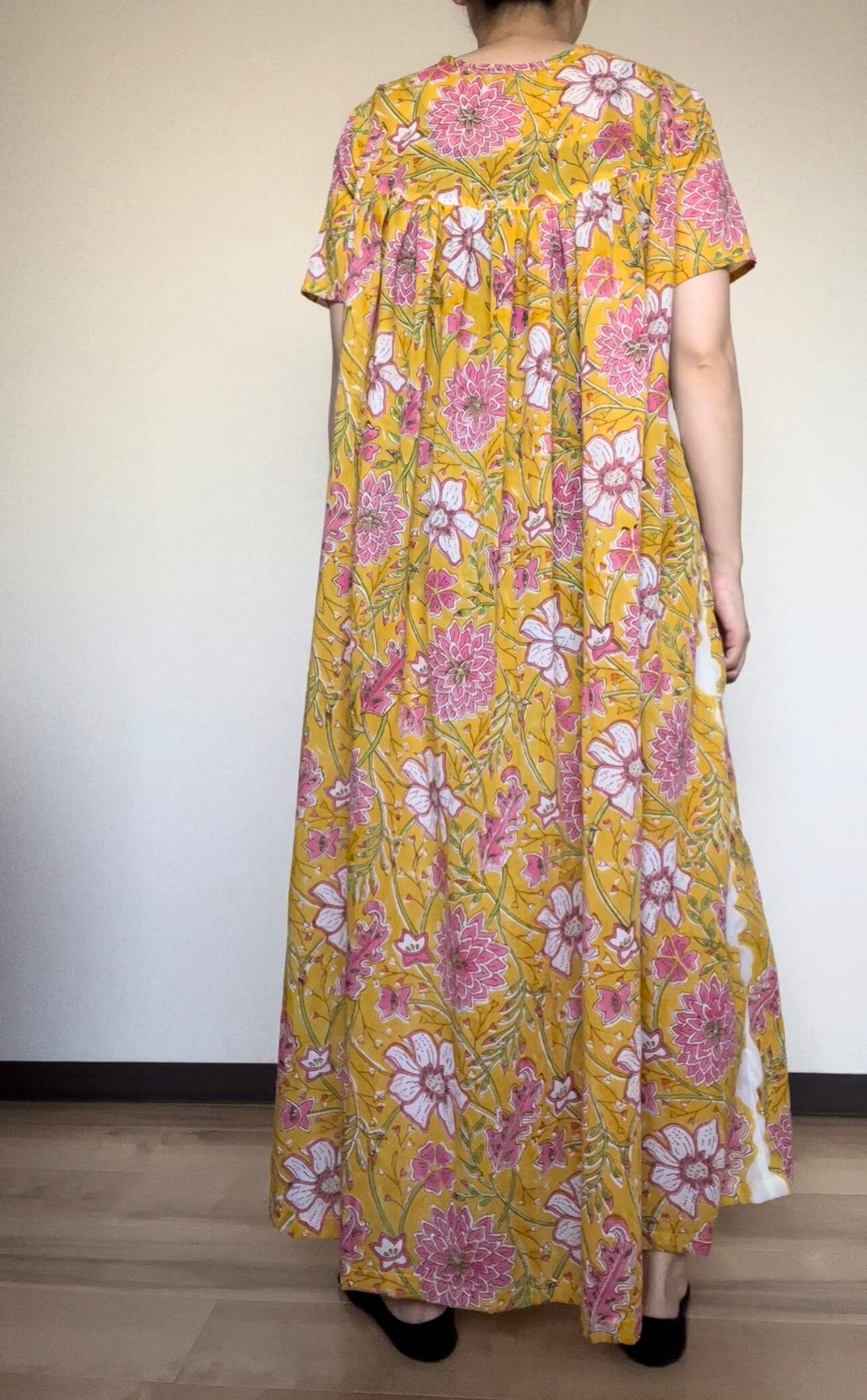 インドの室内着 ナイティ インド綿ブロックプリント(花柄イエロー)