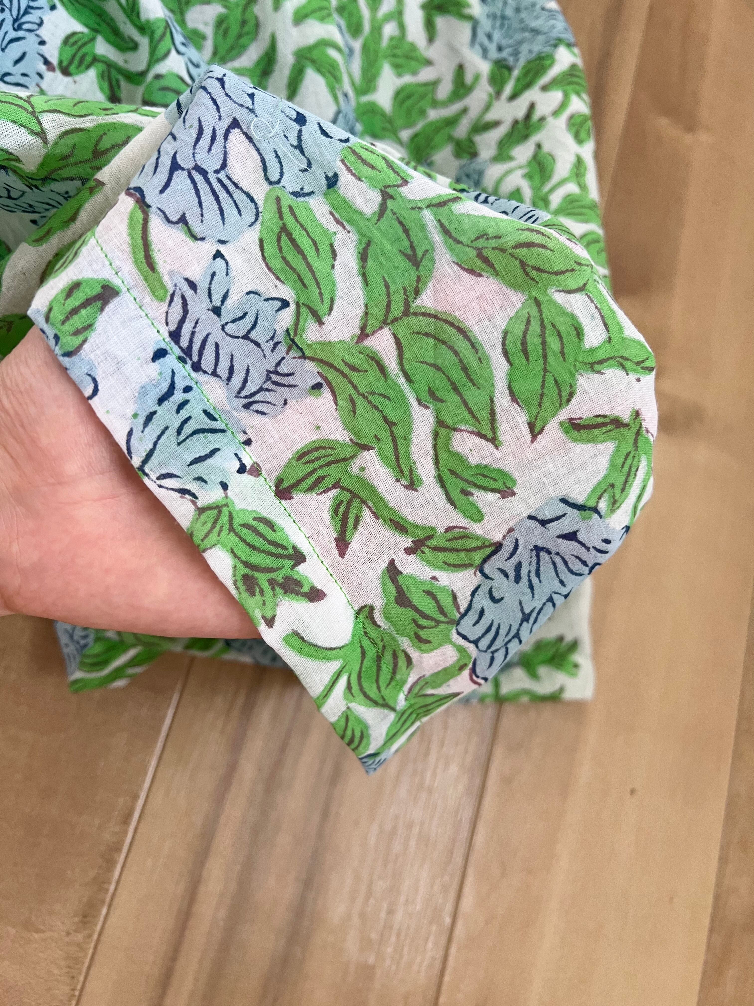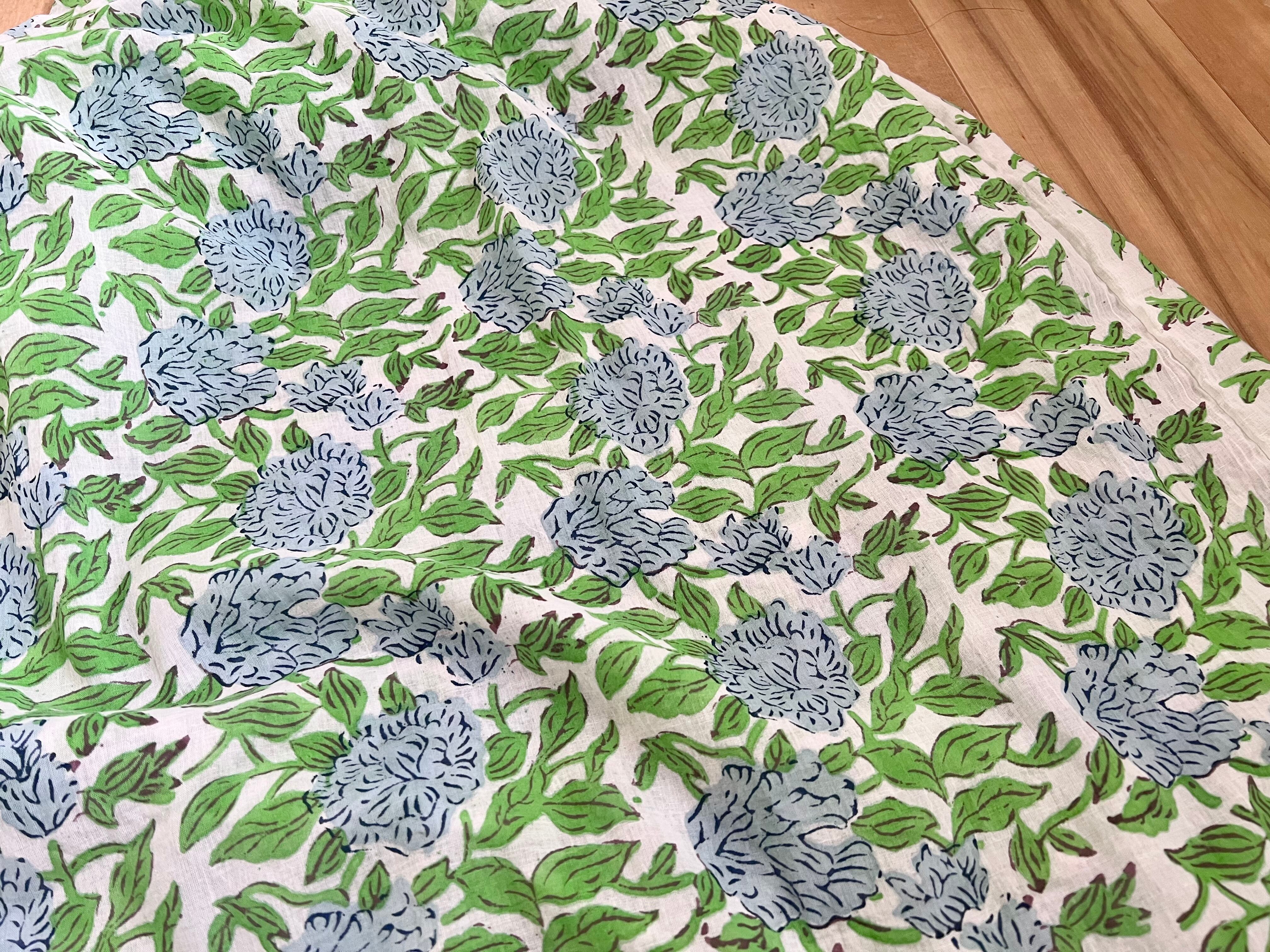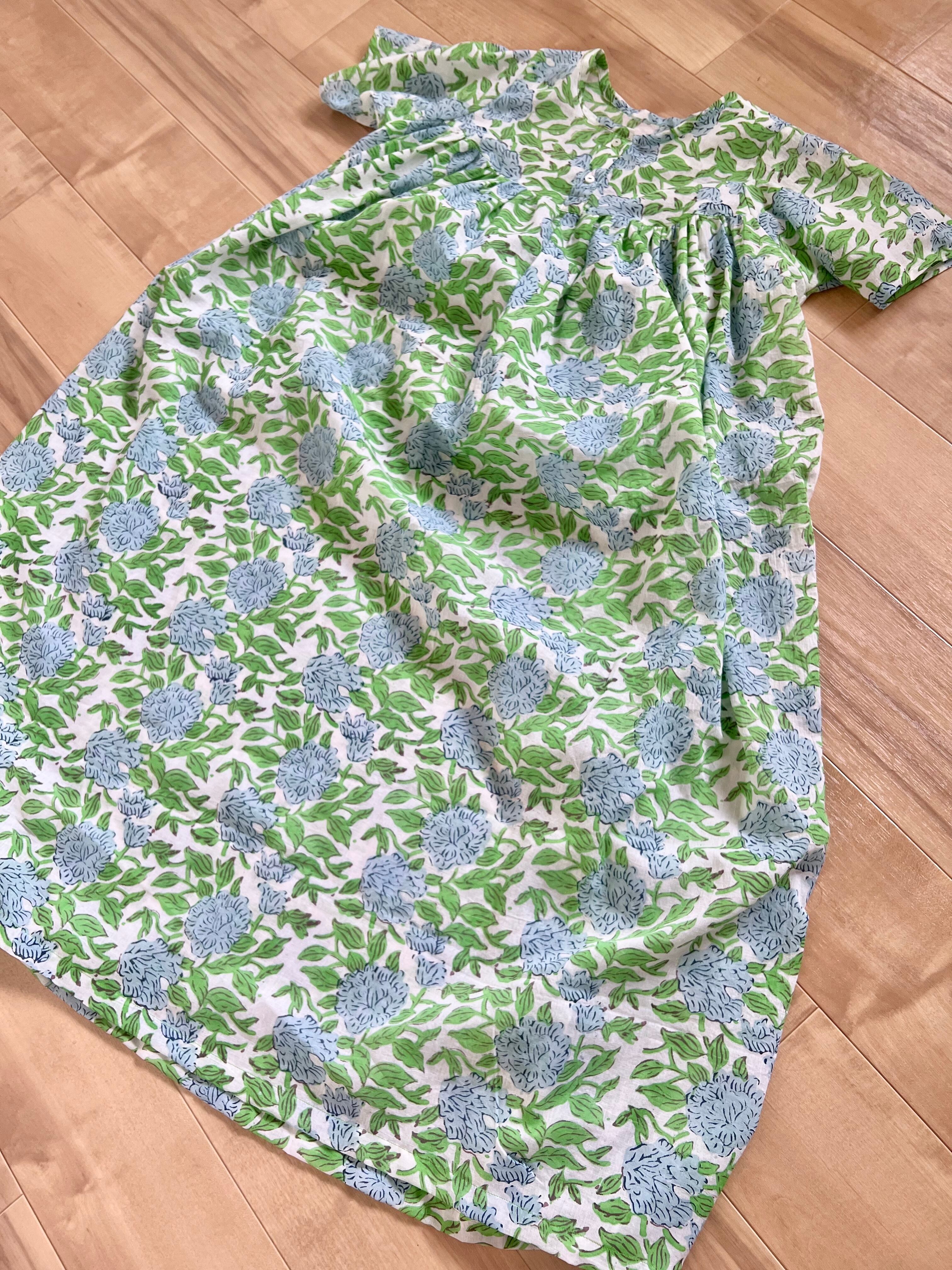 インドの室内着 ナイティ インド綿ブロックプリント(花柄グリーン)