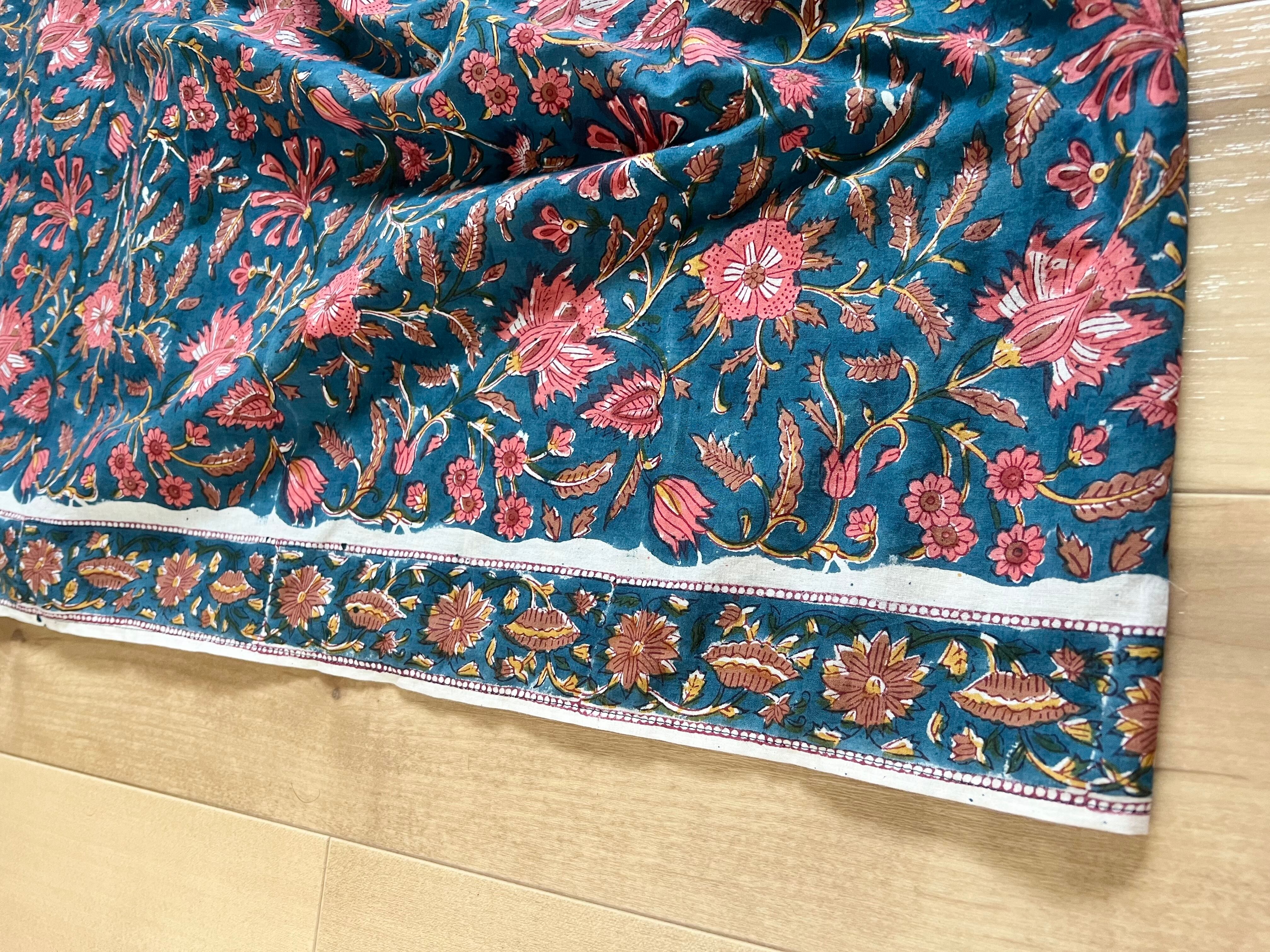 ブロックプリントとは、木版のスタンプで一つ一つ模様をつけていくハンドメイドの生地で、手作りならではの味わいがあります。
